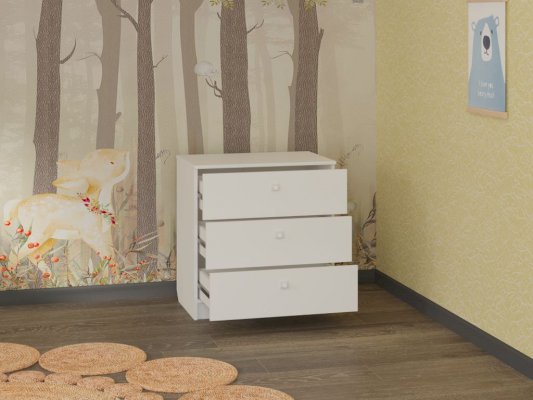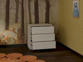 Комод имеет три вместительных ящика полного выдвижения, в которых с легкостью можно разметить как постельное белье, так и одежду.