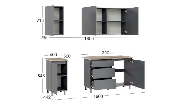 Высота верхних/нижних модулей: 716/846 мм