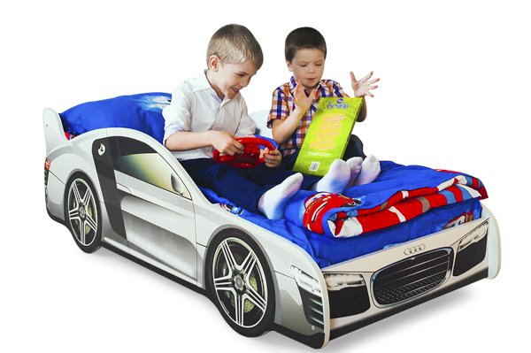 Детская кровать-машина “Ауди” станет любимым местом для сна и игр мальчика или девочки от 2 до 10-12 лет.