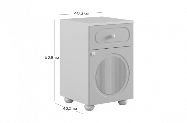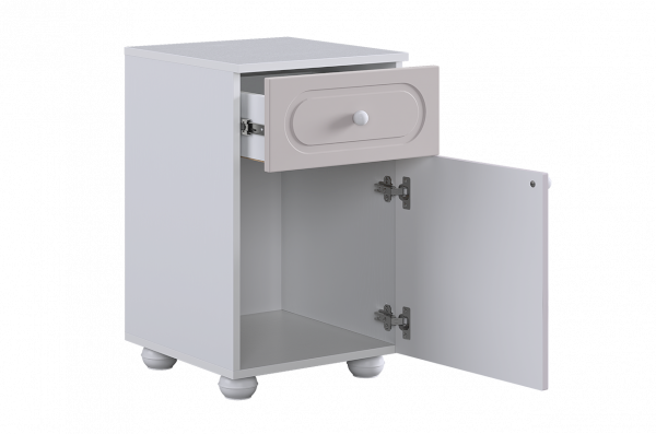 Милана Тумба (с ящиком) — универсальный модуль для детской комнаты, который может использоваться как прикроватная тумба или как компактный комод. Практичное сочетание ящика и закрытого отделения позволяет удобно хранить как мелкие, так и более объёмные вещи.