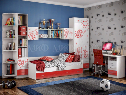 Мебель для детской "Алфавит" - это самый короткий путь для создания комфортного и удобного пребывания вашего ребенка в своей комнате для занятий, учебы и отдыха. Креатив интерьеру добавят оригинальные фасады.
